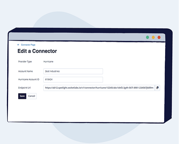 3. Select Hurricane, then add Account Name and Account ID. Click Save.