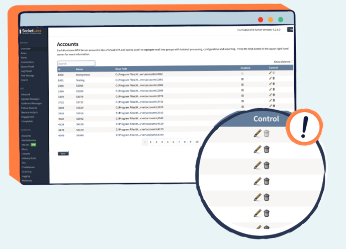 - Log in to your Hurricane MTA UI, click accounts. Then, click the edit icon on the account you would like to select.